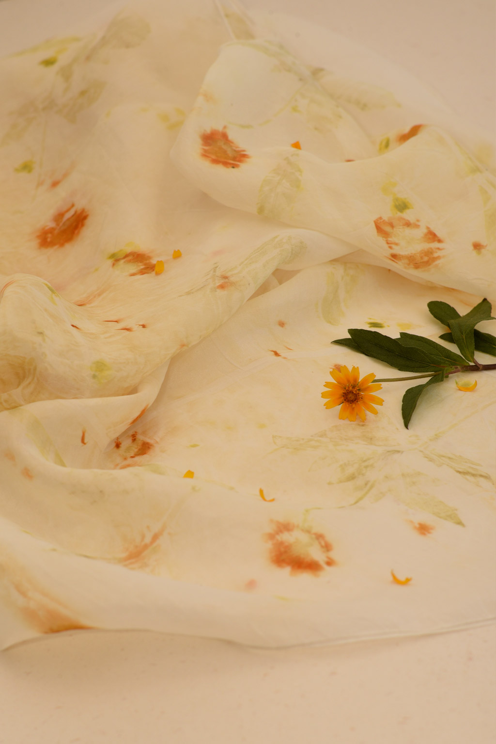 • Natural dyed with wedelia leaves and flowers